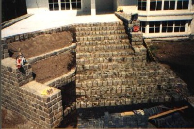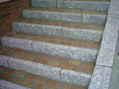 Treppenanlage aus Grnit-Tiefbordsteinen in Kombination mit Betonpflastersteinen.