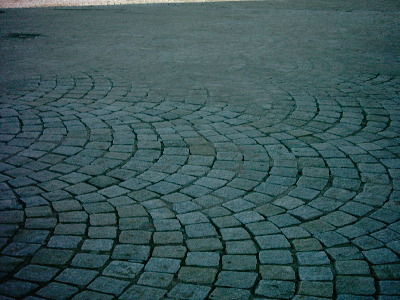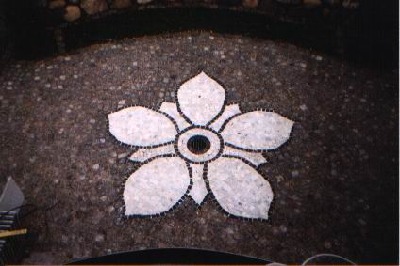 Pflasterfläche aus Granit-Kleinpflaster ausgeführt als Blumenmuster.